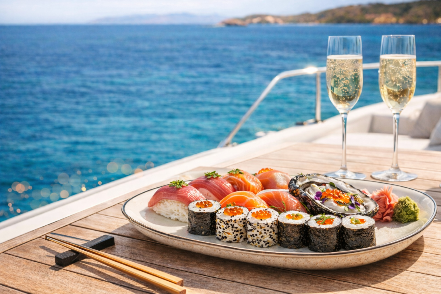 In addition, we specialize in exclusive sushi delivery for yachts and boats in Portals Nous, bringing freshly prepared sushi directly to the marina.