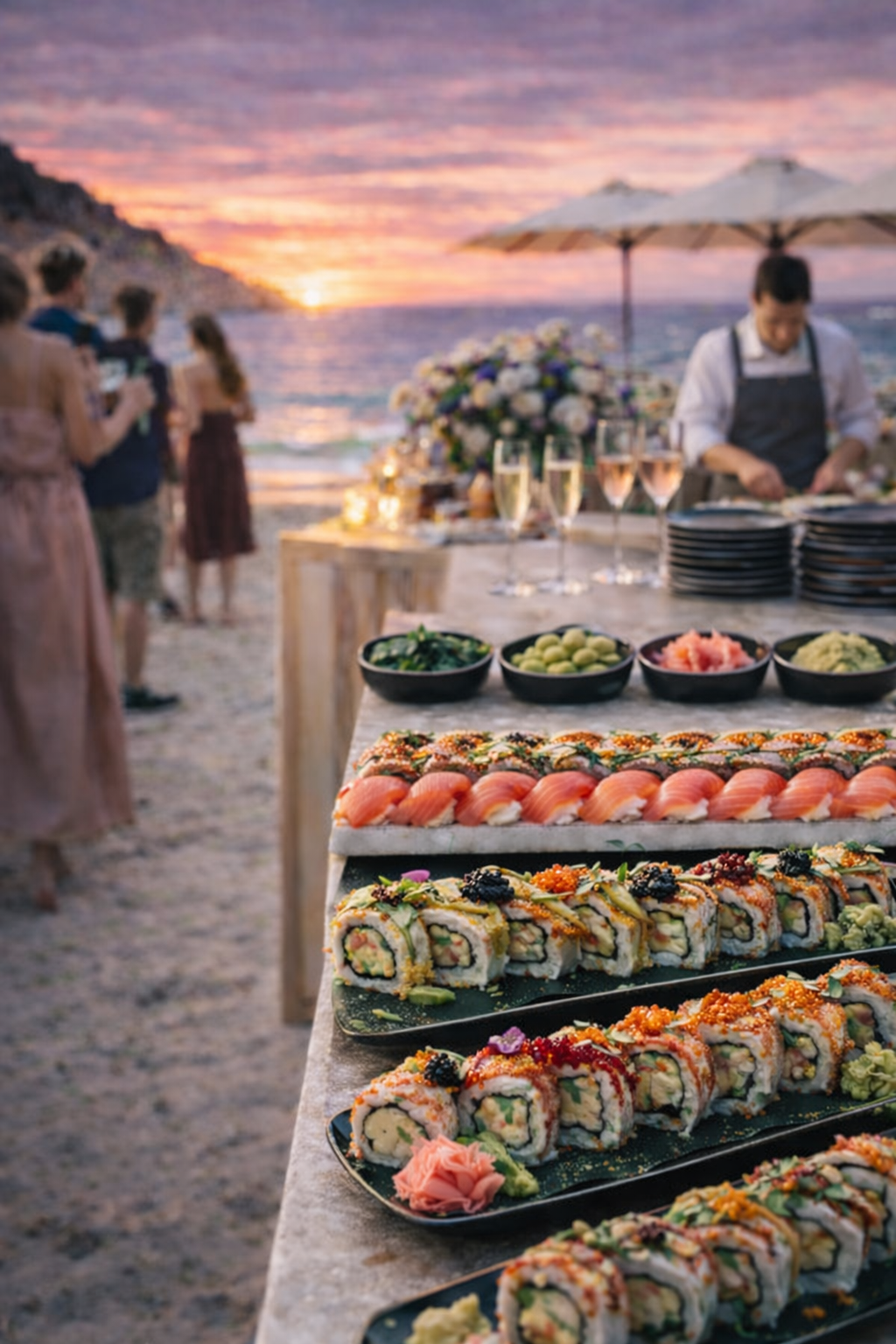 Our chefs also provide sushi catering for private dinners, luxury events, weddings, and corporate gatherings across the island.